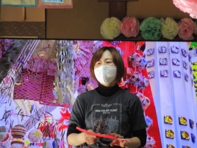 幸望訓の唱和をするチームリーダーのマリリンほっとした顔