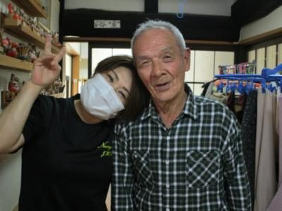 父や母の体調管理はお任せウィンク手 (チョキ)