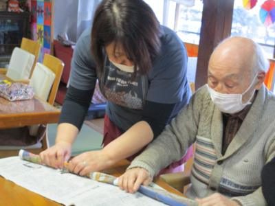 新聞紙を使いMY輪っか作り◎