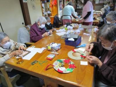 午後の手工芸はクリスマス作品や来年の壁画作りに向けて