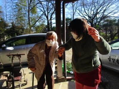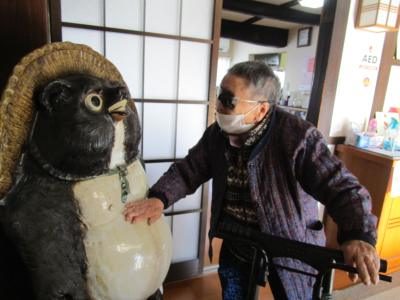 朝一、タヌキさんへの挨拶が毎日のルーティーンとなっている母。