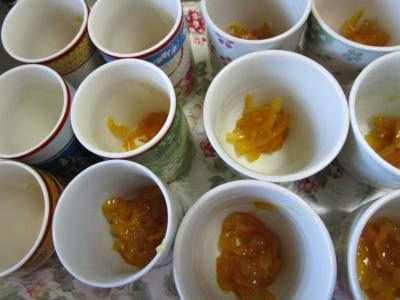 湯のみ茶碗に、皆さんで手作りした柚子ジャムを入れて本日も皆さんに柚子茶を楽しんで頂きたいと思います