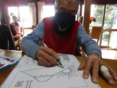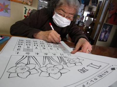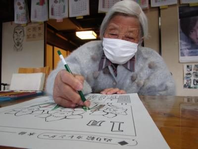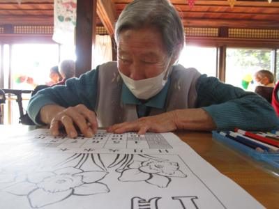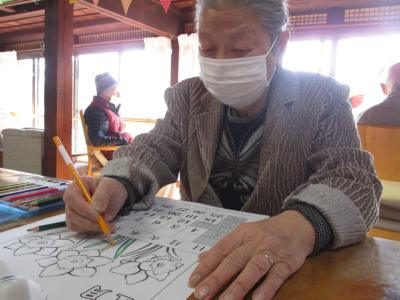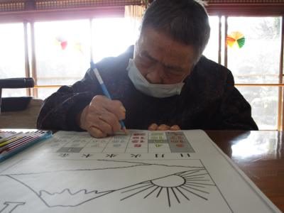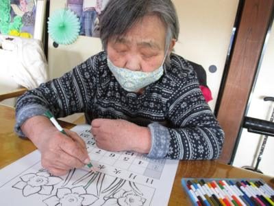 本日の脳トレは暦カレンダーの塗り絵をしましたよ