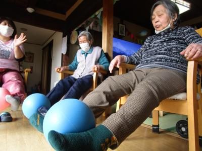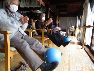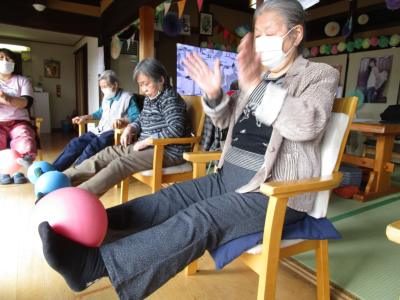 機能訓練では看護師指導のもと、体幹や転倒予防につながる体操を行います。