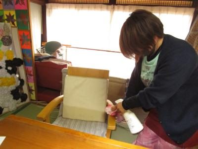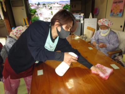 テーブルをしっかりと消毒して吹き上げます