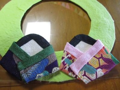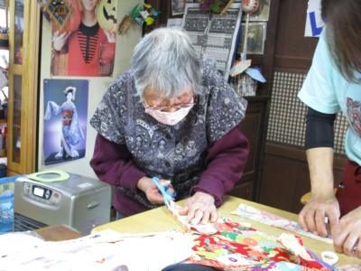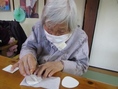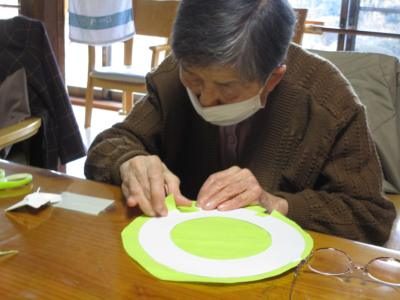 おにぎりの形の型紙をキルト芯に貼って。。。