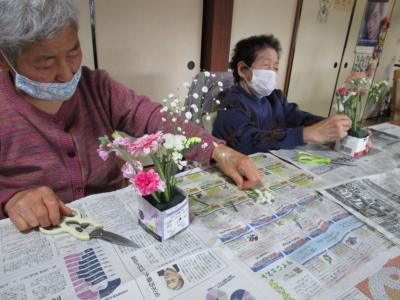 とおっしゃりながらも、お花が好きなのが伝わってくる母達の眼差しと手付きに仕上がりがとても楽しみに