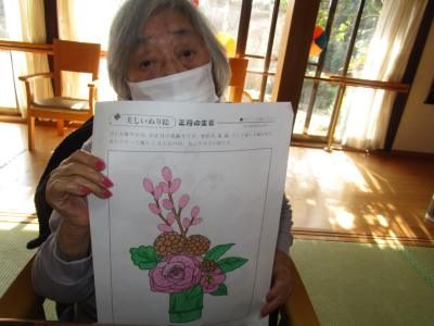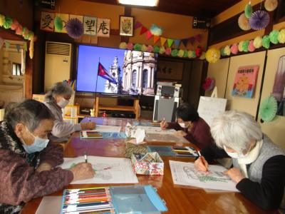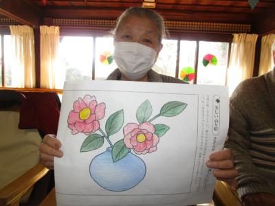 一生懸命に取り組まれた塗り絵が完成し、充実感と満足感でいっぱいの皆さんです