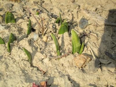 お庭では、球根が芽を出して春の到来を待ち構えているようです