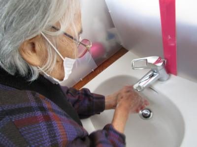 着いたらまずは洗面所でしっかりとうがい手洗いを行います