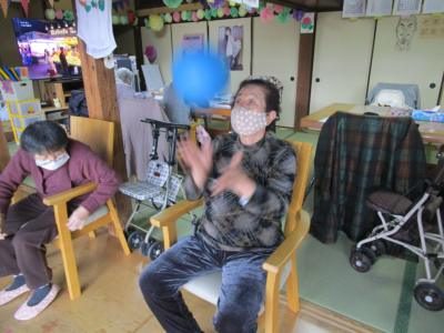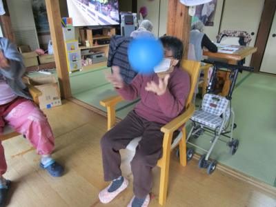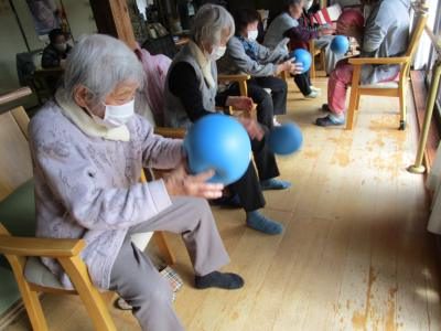 クミちゃん指導の下バランスボールや手すりを使用し、