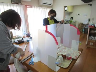 時間毎に窓を開け、常に換気扇も回して行なっています