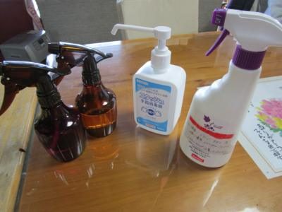感染予防対策として、左から電解水・アルコール・次亜塩素酸ナトリウム