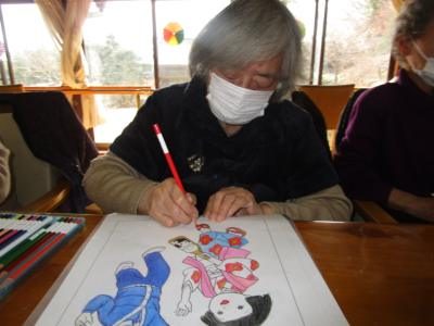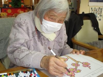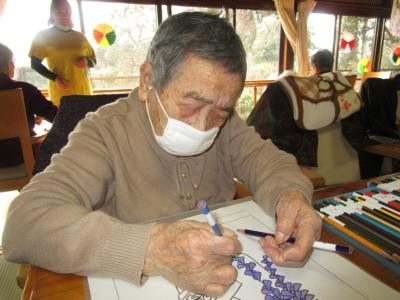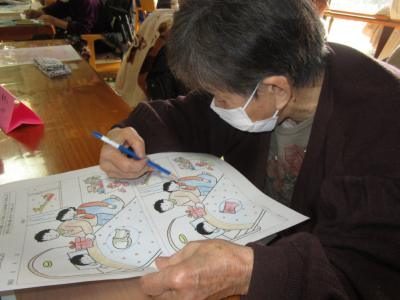 脳トレでは、塗り絵や計算問題等、それぞれが脳活性の為の脳トレに取り組まれています。