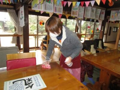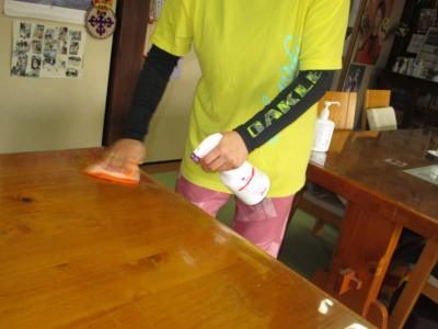 昼食前にも、皆さんのテーブルを隈なく拭き上げます。