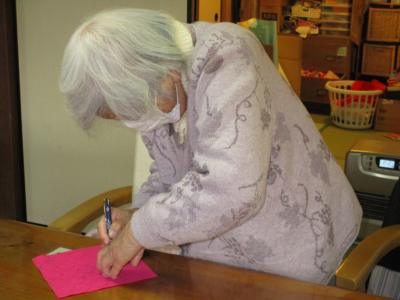 こちらは母、本日午後に行われる手工芸の準備をスタッフと一緒に手伝って下さっています!