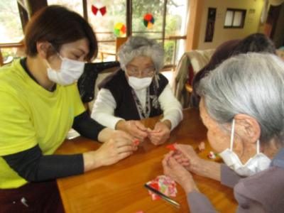 小物入れが完成した母達も、つまみ細工の工程に参加され製作を楽しんでいました😊