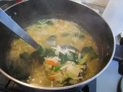今日も野菜たっぷり具沢山のみそ汁を手作りです