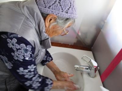母の完璧な手洗い・うがいの様子をご覧いただきました