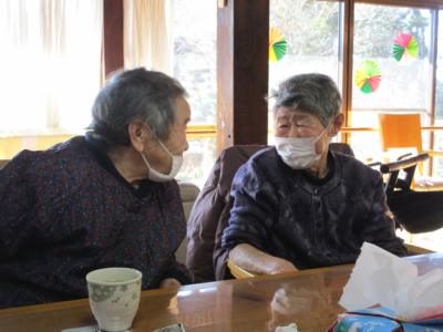 カテキンたっぷりのお茶を飲みながらお話に夢中の母