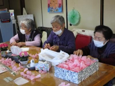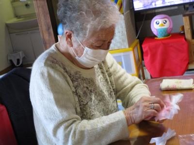 お花紙を使いねじる、巻くなどの作業を通じ、手指の