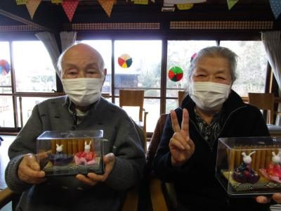 お雛様の後ろに金屏風を作ったら見栄えがとっても良くなりました