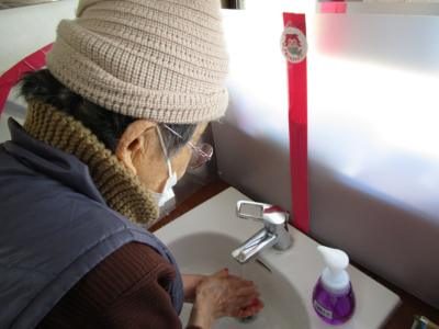洗面所にはパーテーションを置き手洗い・うがい・手指