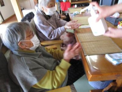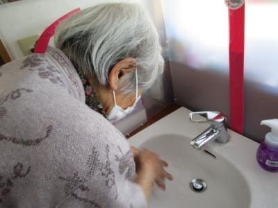 消毒には次亜塩素酸水を使用し、一人終わる毎に洗面所