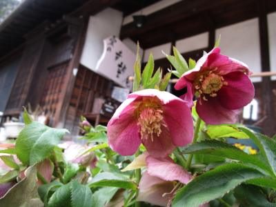玄関前にはクリスマスローズが咲き誇っていますわーい (嬉しい顔)