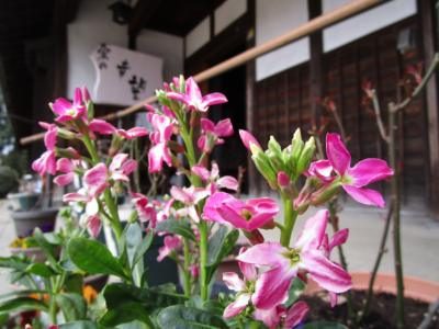 門扉まで続く道にはジュリアンのお花がぴかぴか (新しい)ぴかぴか (新しい)