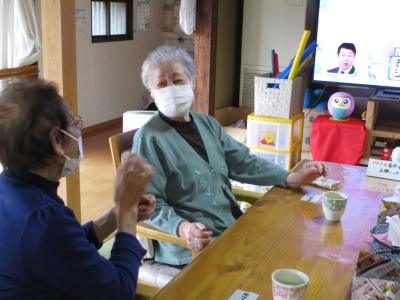 ご来庵後の手洗い・うがい・手指の消毒を済ませたあとはあったかいお茶を飲みながらお仲間との会話を楽しんでいまするんるん (音符)