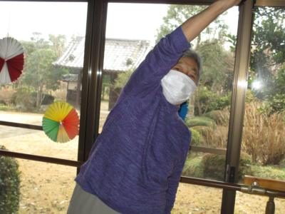 準備運動を兼ねた体操を行い準備万端の父や母です