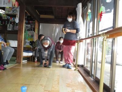 母の投げたボールは、床面を転がらずにバウンドしてしまいました