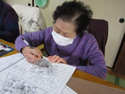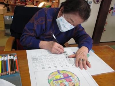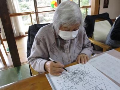 配色を考えながら綺麗に色を塗られていました鉛筆