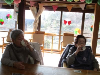 そのあとにはあったかいお茶を飲みながらお仲間との語らいやバイタルチェックを行います