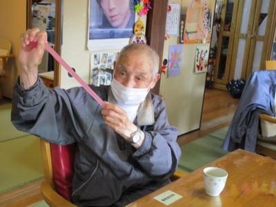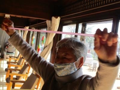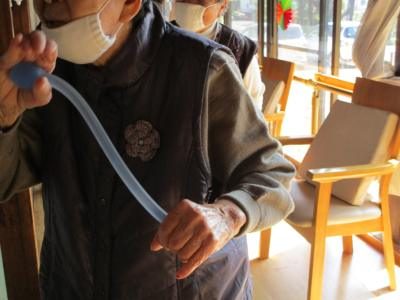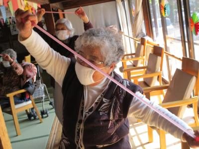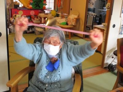 今日はゴムのストレッチバンドを使っての歌謡体操を行いましたよ