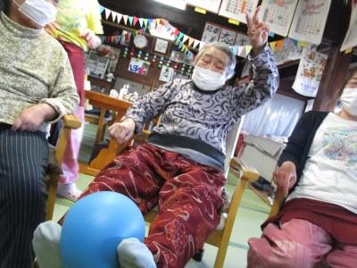 午後は転倒予防体操手 (グー)わーい (嬉しい顔)手 (グー)