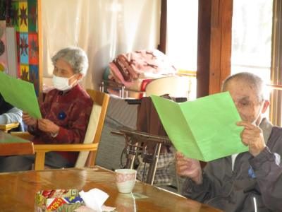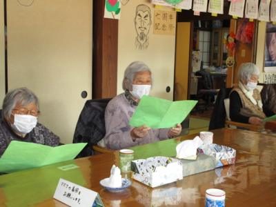 ぼけたらあかんの唱和では、文字を目で追いしっかりと唱和されている皆さん。
