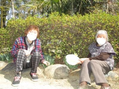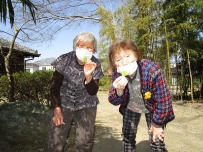 ふきのとうが採れたよ~・・・とカメラに向かってポーズを取る母達です(*^_^*)