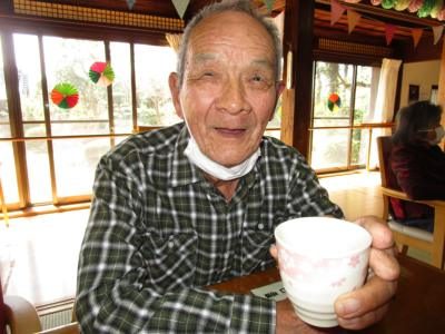 温かいお茶を飲みながら、笑顔を見せる父や母