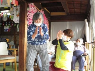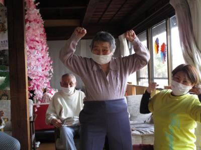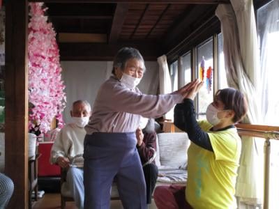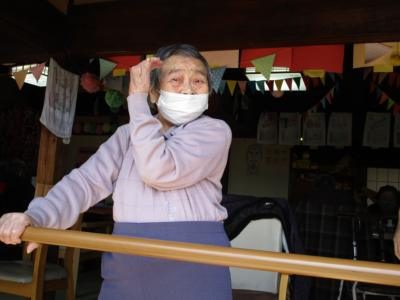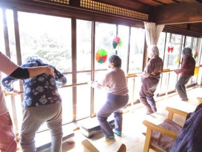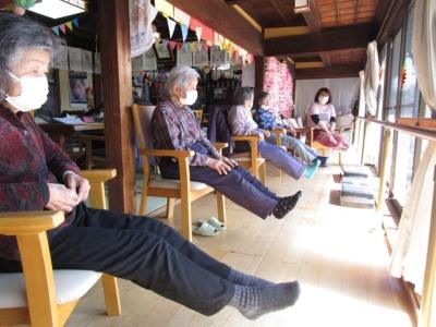 ポカポカの縁側にて、日差しをたっぷりと浴びながら身体を動かされています。