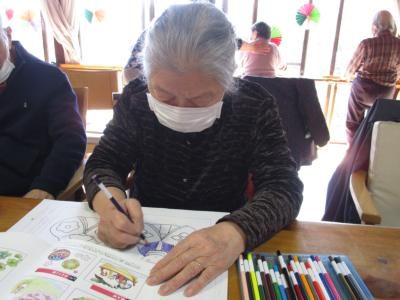 それぞれ、塗り絵や間違い探し等に集中され取り組まれています。