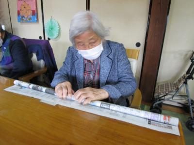 新聞を丸めたり、ひねったり・・・勝敗を分ける大事な取り組みですね!?