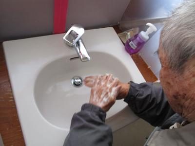 手洗いが終わったら手指消毒も忘れません