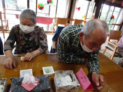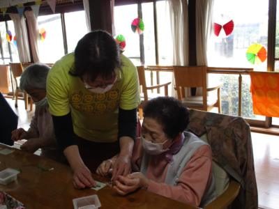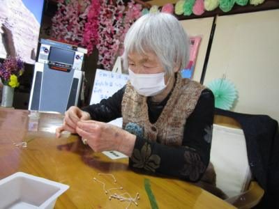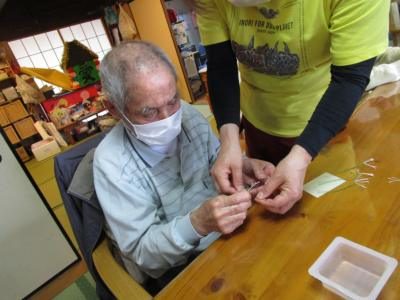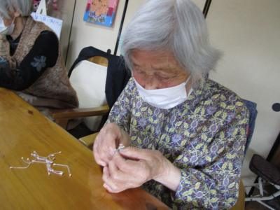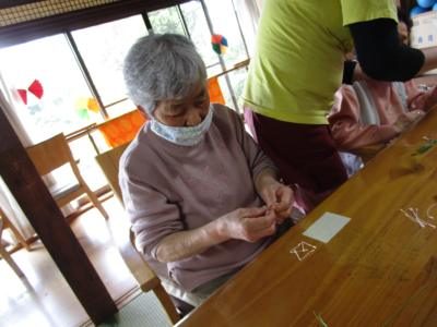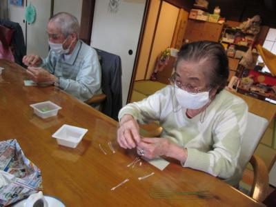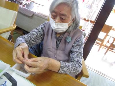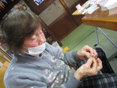 手工芸で夢中になっているうちに自然と機能訓練です