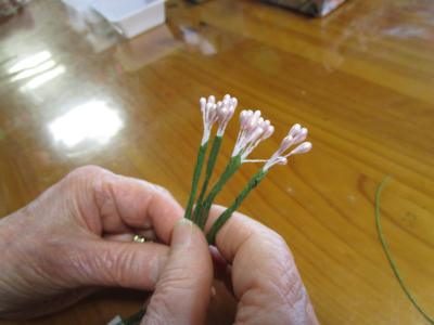 ワイヤーを使って留め、フローラテープでしっかりと巻いていきます