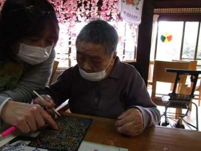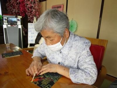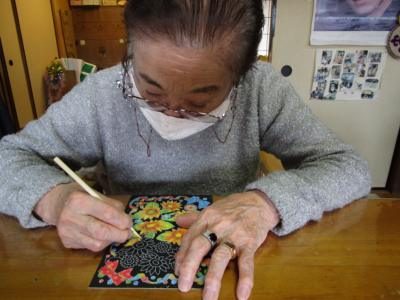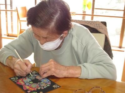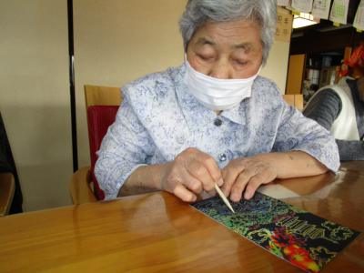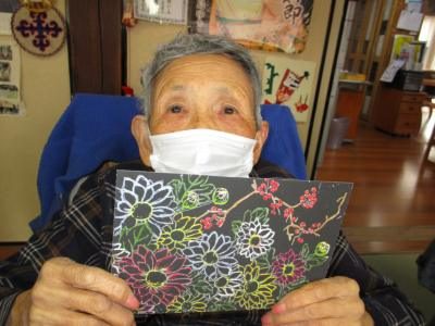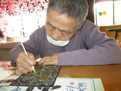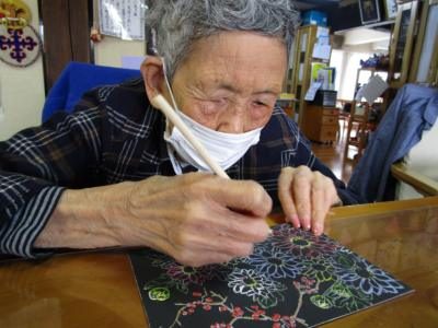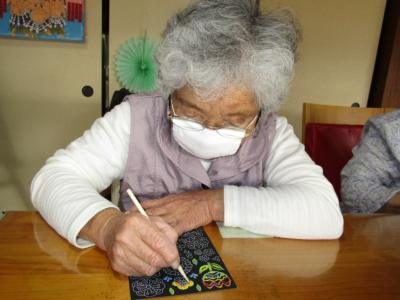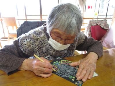 色をペンで削っていく内にデザインが浮かび上がってくる様子がとても面白く、皆さんも癒されながら取り組まれているようです。