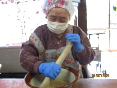 胡麻和え用の胡麻を一心不乱にすってくださる母
