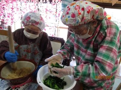 ほうれん草を切り終えた母が胡麻すりを終えた母と協力して、ほうれん草の胡麻和えを仕上げて下さいました