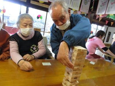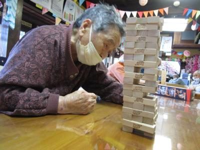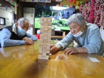 初めてジェンガを楽しむ父と母もいらして、積み上がっていくジェンガにドキドキワクワクしながら楽しまれていました
